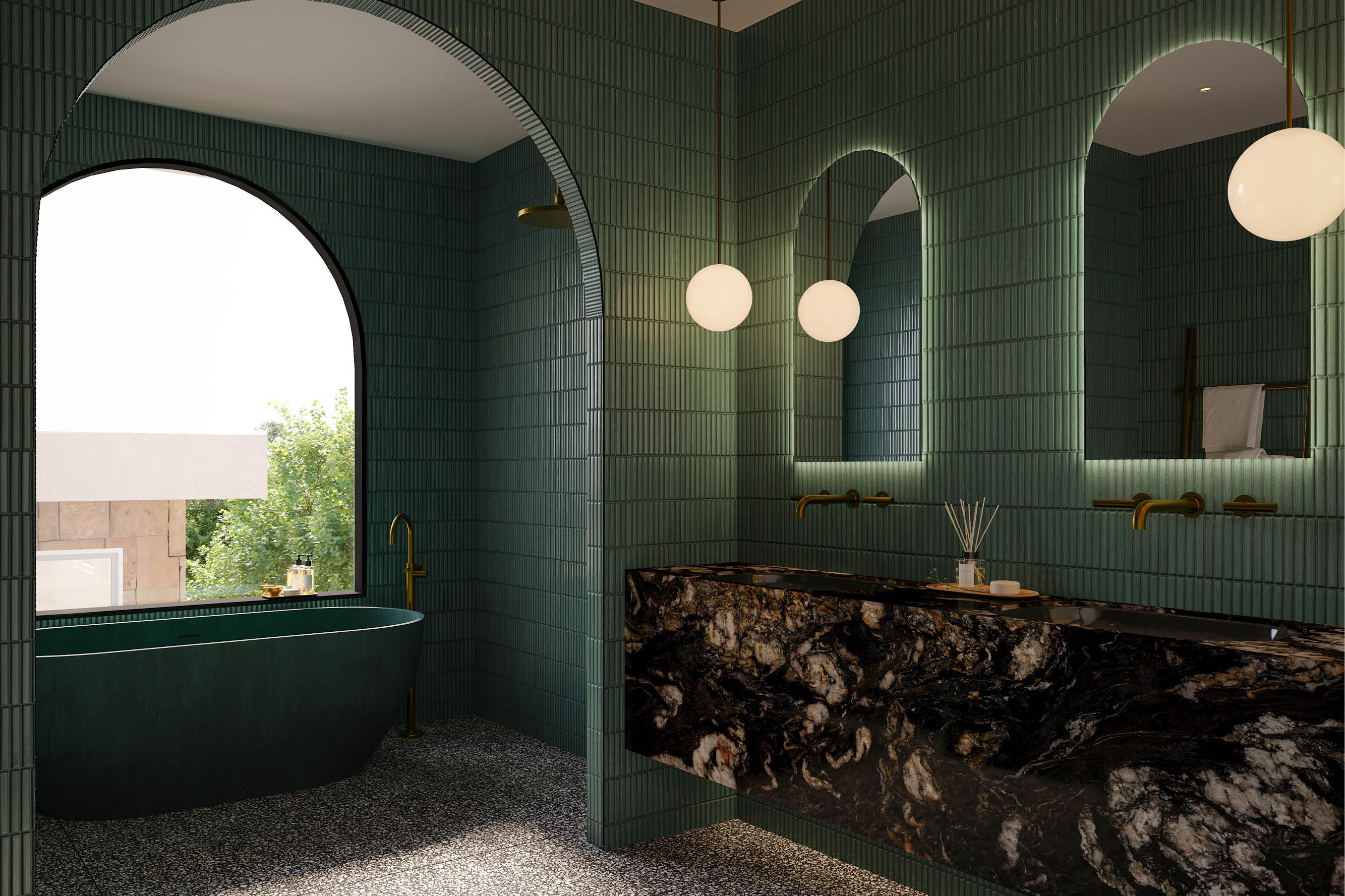 The use of deep hues, geometric shapes, bold tiles and decorative mouldings gives a modern interpretation to this timeless style," says Hall and Hart’s Senior Interior Designer and Team Leader, Carly Beautyman.