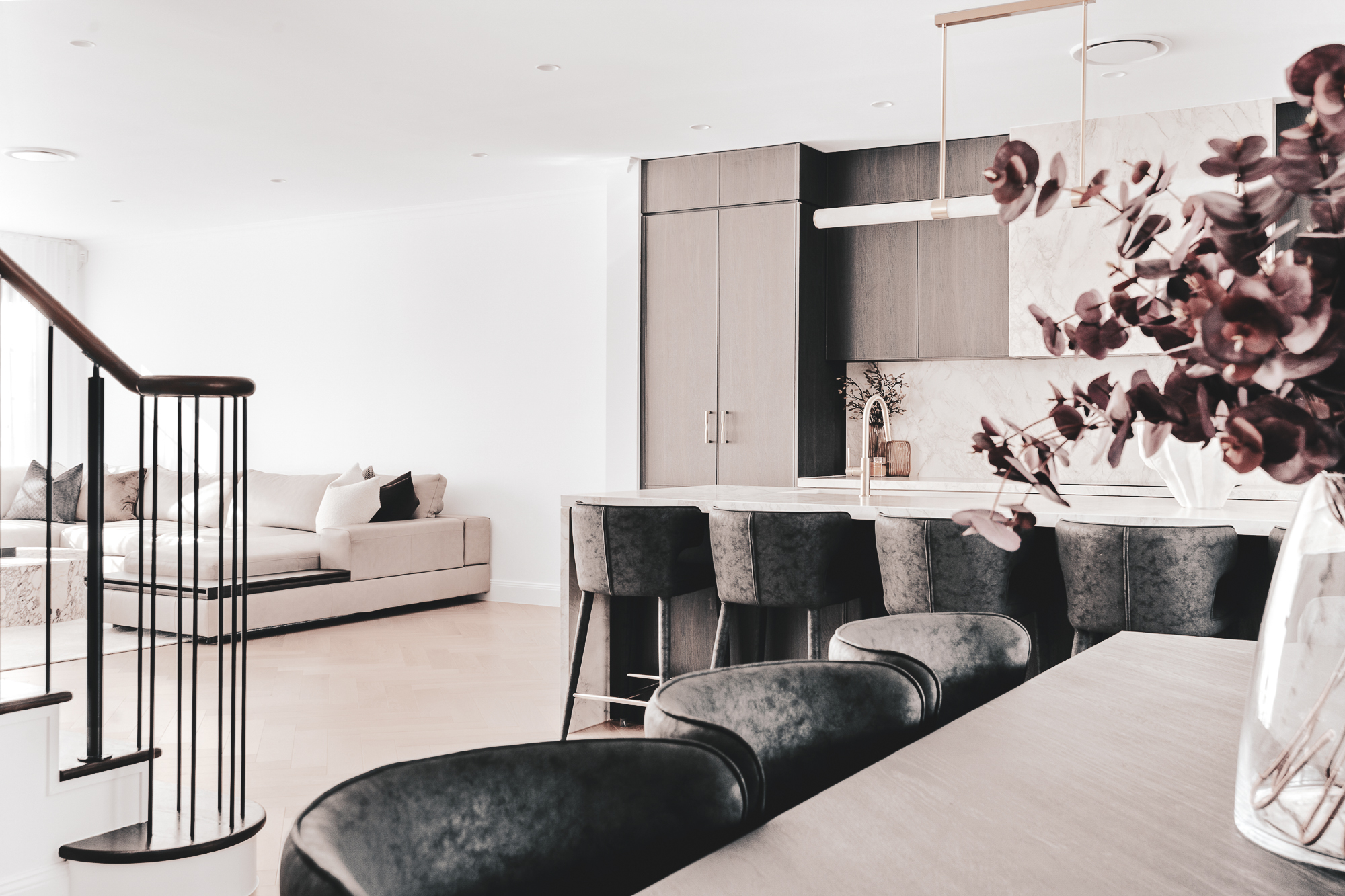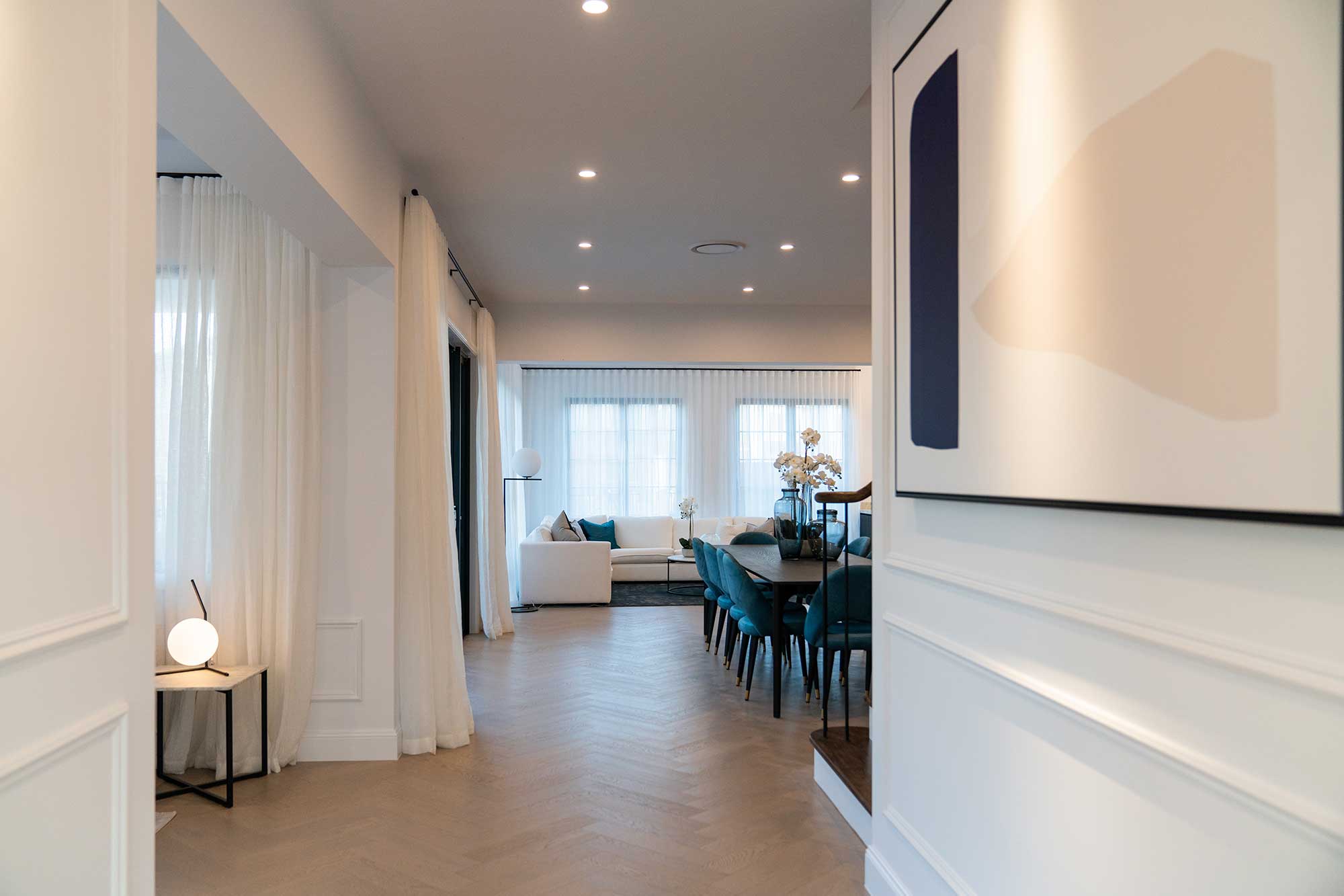 Originating in the renowned French provinces of Normandy, Brittany, and Provence, the French Provincial style is characterised by traditional elements such as brick and stone facades, steeply pitched roofs, and arched windows. The Australian adaptation of the French Provincial style has progressed by incorporating its finest attributes, resulting in captivating streetscapes. To harmonise with this aesthetic, the interior design holds equal significance.